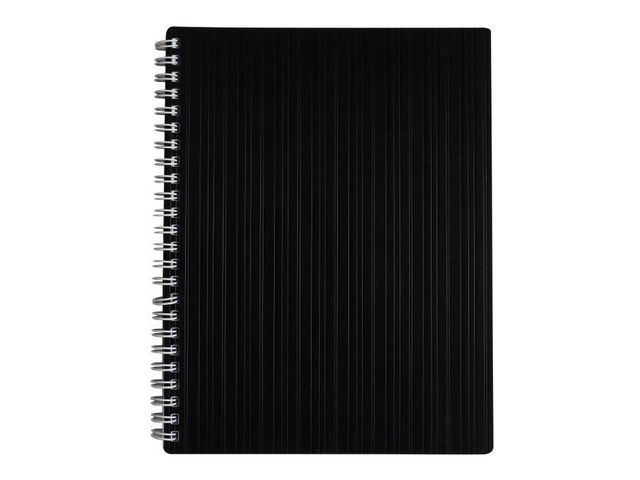 Spiralbundet A5 kollegieblock med utsidor i svart PP plast. Linjerade sidor. – Format: A5 – Papperskvalitet: 70 g/m2 – Antal blad: 70 – Linjerat